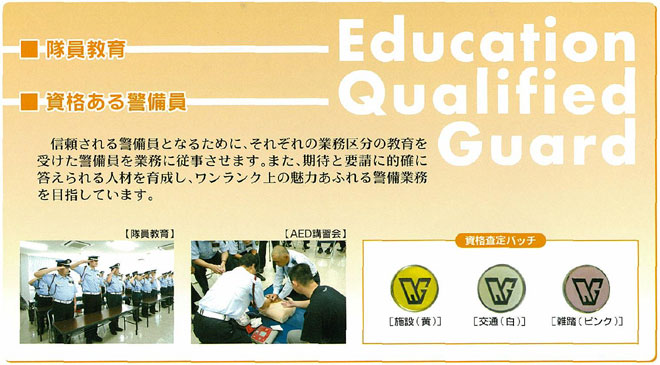 警備にあたっては、新設・丁寧明るい対応で、施設の品位向上に努めます。